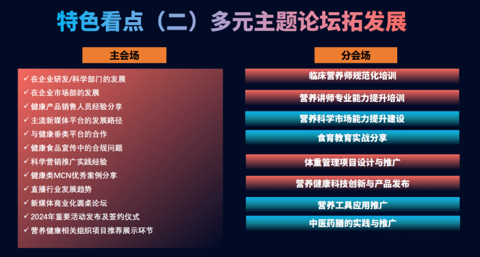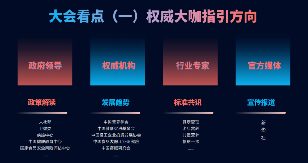 会议将邀请人社部、卫健委、教育部等相关领导及中国营养学会、中国健康促进基金会等相关学术团体,各地营养师协会、营养学会、健康管理协会等相关团体,健康产业、媒体平台等单位,国内外著名专家、资深营养师、产业科技工作者等做主题讲座和专题报告。欢迎各领域营养师包括公共营养师、营养指导员、运动营养师、营养配餐员,中医营养师、临床营养师、注册营养师及营养健康从业者积极参加。让我们共谋营养健康行业新发展!