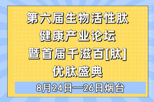 第六届生物活性肽健康产业论坛暨首届千滋百[肽]优肽盛典--烟台