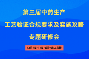第三届中药生产工艺验证合规要求及实施攻略专题研修会(长沙+线上网络直播)