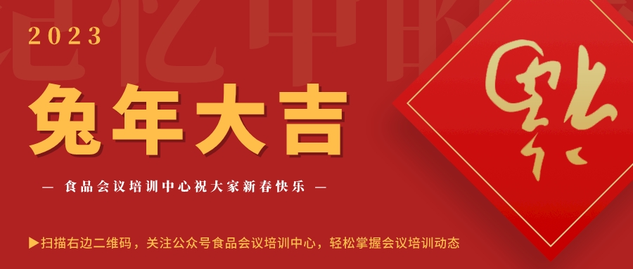 新的一年,一切都是崭新的开始。食品会议培训中心,愿每个人都能收获更好的自己,祝大家新春快乐,兔年大吉!我们也会竭诚为大家提供更多有价值会议培训!