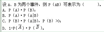 设A、B为两个随机事件,则P(A+B)可表示为( )。