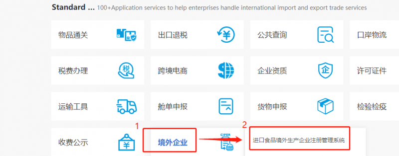 第一步:登录单一窗口:https://new.singlewindow.cn/,选择首页中“境外企业”模块下的“进口食品境外生产企业注册管理系统”。