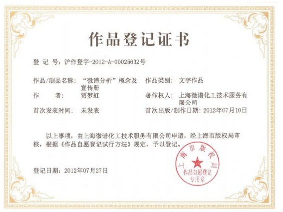 法律声明:本公司现有网站上所有内容均已进行版权登记。同行机构如需使用相关资料,请注明引用自“微谱技术官网”,否则本公司将依法提起诉讼,维护自身的知识产权!