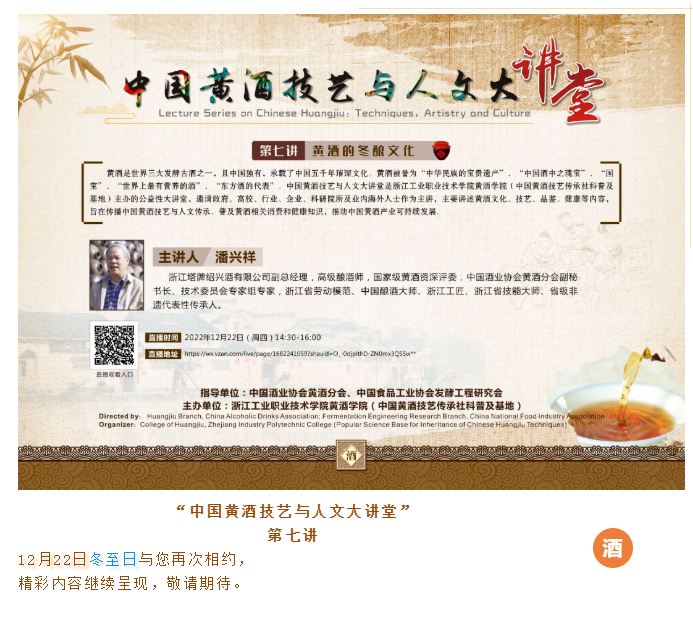 直播预告|第七讲:潘兴祥《黄酒的冬酿文化》