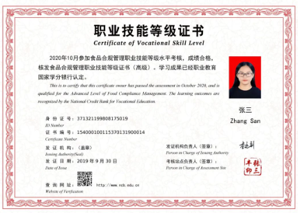 【食品标签审核员】(中级):能熟练掌握并应用食品标签标识的法律法规及标准等知识要求,完成本公司产品标签标识的审核工作;具备指导初级食品标签审核员或其他人员审核食品标签的能力;初步具备食品标签风险管理的能力。