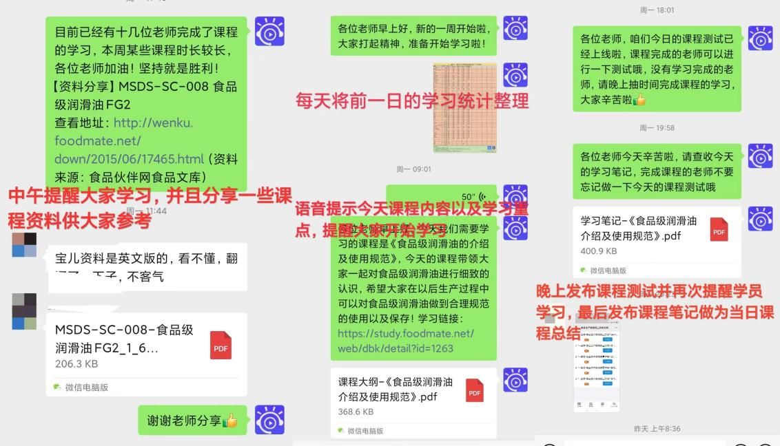 中午:助教分享课程相关资料,并再次提醒学员学习