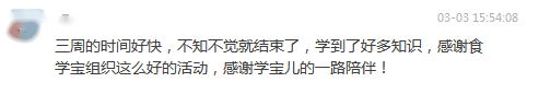 第一期“一起学”活动为期三周,活动设置13门课程,总学习时长达16个小时。虽然学习时间长,课程内容多,依然有超过75%的学员出色得完成了所有课程内容学习,成功获得了食学宝特别定制的学习活动证书。