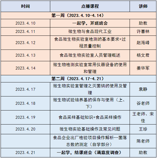 食学宝“一起学”伴学活动将会持续开展,为食学宝VIP会员提供最贴心的伴学服务,促使大家坚持学习,提升自我。第二期伴学活动《一起学·食品微生物实验室检测基础》已经开始招募报名,欢迎各位从事微生物检测或者感兴趣的学员报名参与!
