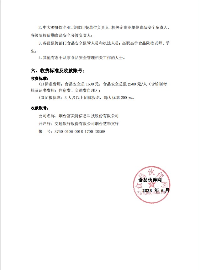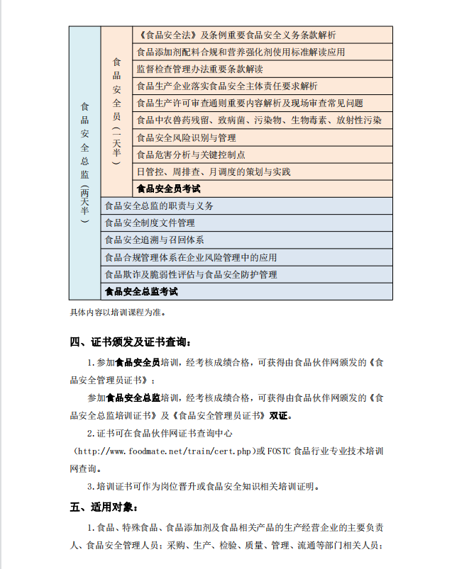 为了帮助食品生产经营企业从业人员准确理解、贯彻执行《规定》中的要求,建立健全食品安全管理制度,落实食品安全责任制,提升企业相关责任人分析研判潜在风险,及时采取处置措施,消除风险隐患,提升食品生产经营企业食品安全管理人员的综合业务水平,食品伙伴网将开展“食品安全员和食品安全总监培训”,具体信息如下: