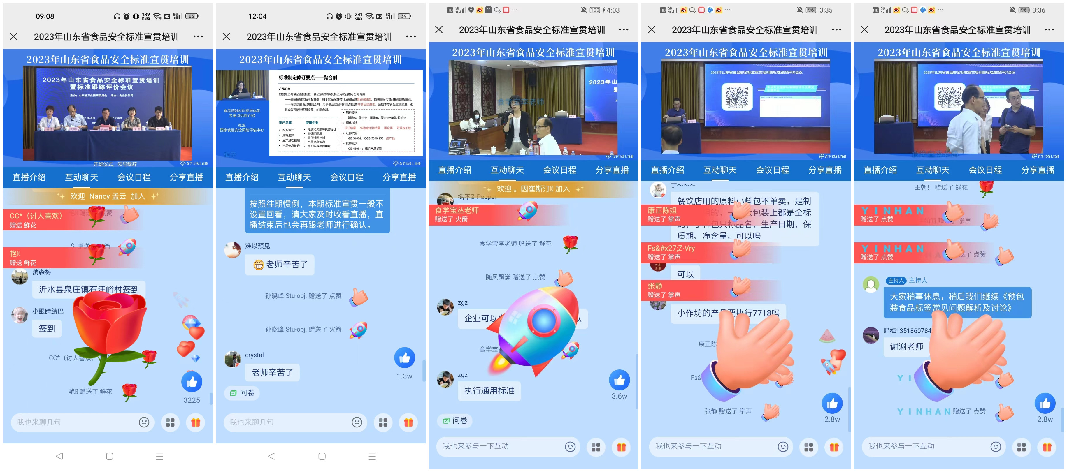 核心提示:9月5-8日,山东省卫生健康委员会举办为期四天的2023年山东省食品安全标准宣贯培训暨标准跟踪评价会议。本次培训由山东省卫生健康委员会主办,食品伙伴网承办,食品伙伴网食学宝在线学习平台全程现场直播,会议采取线上、线下相结合的方式,现场参会150多名代表,线上参会近万人,来自食品企业、餐饮单位、认证检测机构、及市场监管、卫生、农业、学校等多层面人员共同学习,最终线上观看人次达5.6万。