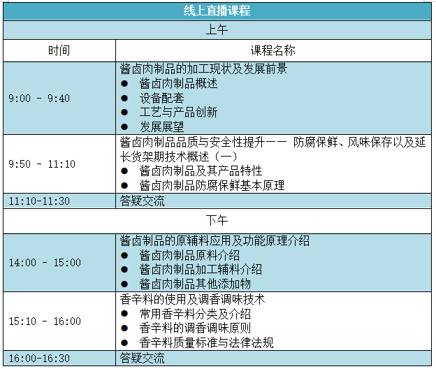 课程主题:第四期酱卤制品加工技术培训班——线上课程