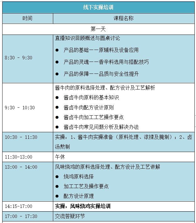 受新冠疫情影响,“第四期酱卤制品加工技术培训班”线下课程很遗憾不能如期举办。结合当下特殊形势, 我们决定将部分基础理论课程,通过线上直播的形式,先行提供给大家学习,时间定于2022年11月5日开班,线下培训定于2022年11月24-26日在烟台举办。