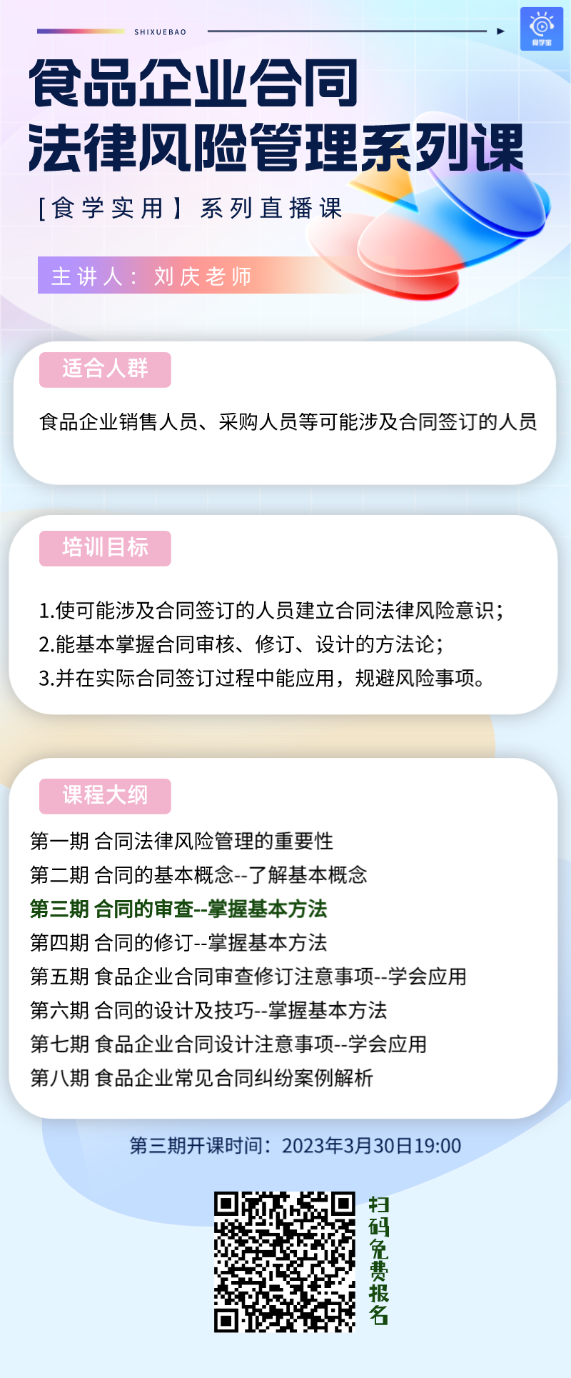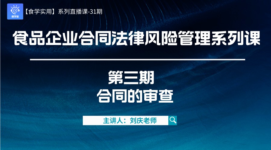 课程题目:【食学实用】食品企业合同法律风险管理系列课 第三期 合同的审查