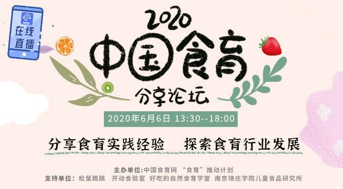 为了让中国食育人了解更多食育信息,分享更多食育实践经验,中国食育网与“食育”推动计划联合主办的“中国食育(2020)线上分享论坛”将于2020年6月6日13:30准时直播,欢迎大家参与。同时感谢松鼠跳跳、开动实验室、好吃的自然食育学堂、南京晓庄学院儿童食品研究所对本次论坛的支持。