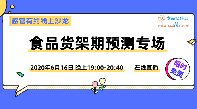 目前食品产品进入货架期中后段时,虽然其理化和微生物指标合格,但因为感官品质的下降使得消费者对产品的接受度下降甚至不接受。决定一个产品在市场上的流通寿命在很大程度上取决于产品从消费者可接受转为不可接受的时间分界点。为此,食品伙伴网邀请行业内专家和领航企业一起,推出【感官有约】线上沙龙---“食品货架期预测专场”,和大家在线进行分析和探讨。