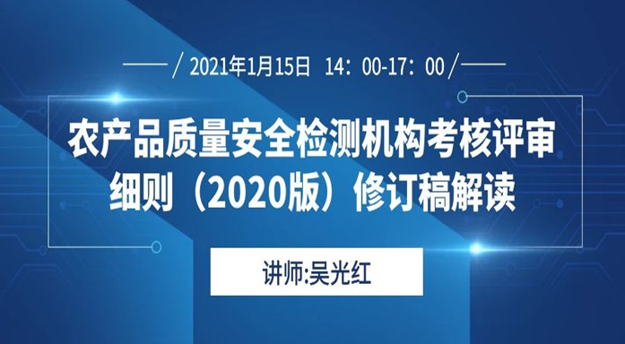 特别提醒:因新版《农产品质量安全检测机构考核评审细则》将于近期发布,《农产品质量安全检测机构考核评审细则(2020版)修订稿解读》推迟直播,正式稿发布后再推出本课程,已报名人员无需重复报名,届时会通知大家开课时间,给您带来不便,请您谅解。
