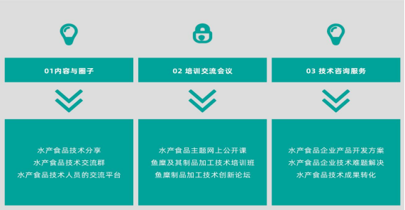 依托食品伙伴网强大资源体系及专业的服务团队,整合各方面资源,线上+线下双重活动模式有效互补,为水产食品从业人员打造专业学习交流培训平台,并为水产食品企业提供深层次定制化第三方技术服务。