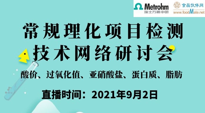为提升我国相关单位的食品检测技术能力,由食品伙伴网主办的“常规理化项目检测技术网络研讨会”将于2021年9月2日举办,邀请各领域的专家老师给大家带来精彩课程,诚挚邀请您的参与!