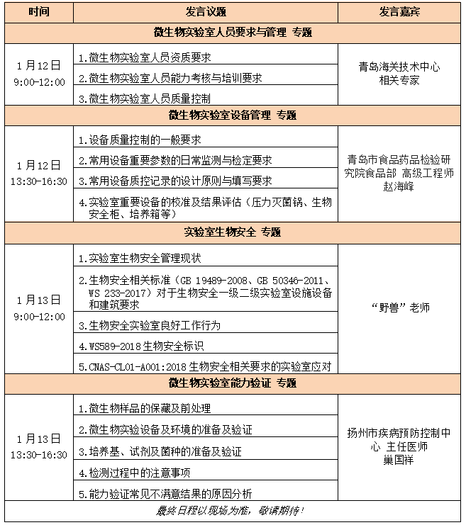 食品微生物是全球食品安全的主要问题和监管重点,而实验室检测是保障食品安全的最后一道防线。实验室能否得到准确的检验结果取决于实验室的质量与能力,为了提高食品行业实验室的质量和技术水平,使各实验室能够更加准确规范的开展检测工作,保障我国的食品安全,由食品伙伴网主办的“食品微生物实验室技能提升专题培训班”将于2022年1月12-13日进行线上直播。现将相关事宜通知如下: