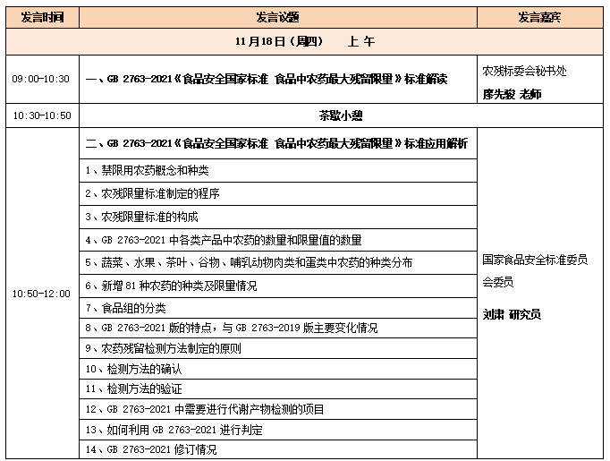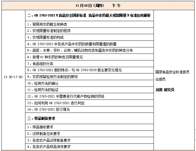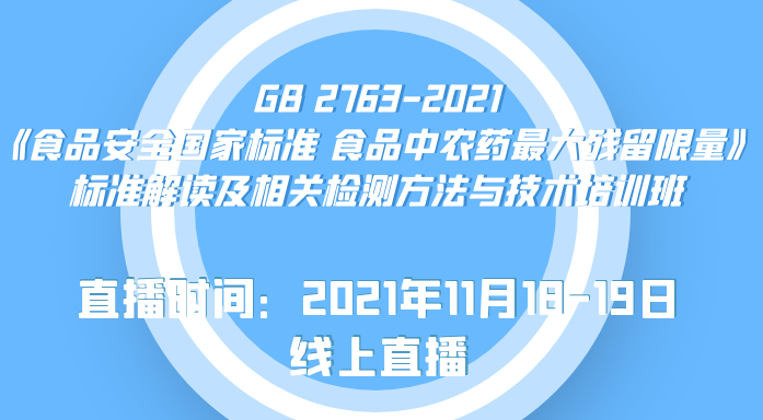 为了帮助各相关管理部门、食品生产企业以及食品检验机构正确应用《食品安全国家标准 食品中兽药最大残留限量》,提高检测技能,保障食品安全,由北京市食品药品安全企业联盟指导、食品伙伴网主办的“GB 2763-2021《食品安全国家标准 食品中农药最大残留限量》标准解读及相关检测方法与技术培训班”,计划于2021年11月18日-19日在 线上 举办。