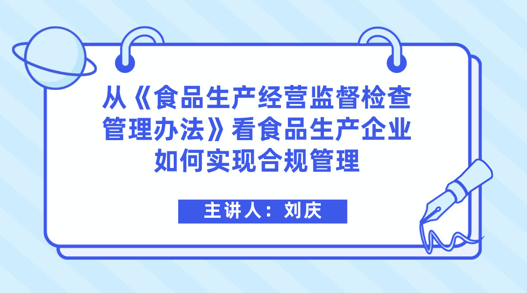 课程题目:从《食品生产经营监督检查管理办法》看食品生产企业如何实现合规管理