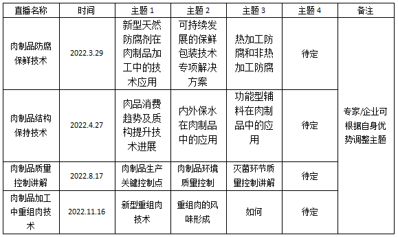 在此背景下,我们设立“肉制品联盟知识讲堂”系列直播课,特邀请知名企业技术人员或专家给我们分享前沿技术,为肉制品行业同仁搭建一个线上学习、交流互动的平台,促进企业与人才、企业与企业之间的交流,共享行业先进技术,提高肉制品行业的技术水平。