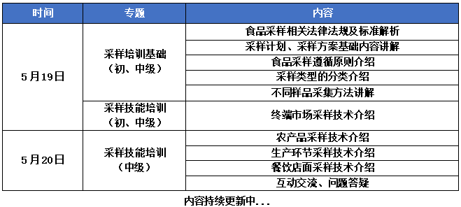 本次培训为食品采样员(初级)和食品采样员(中级),高级采样员的培训工作另行通知和安排。
