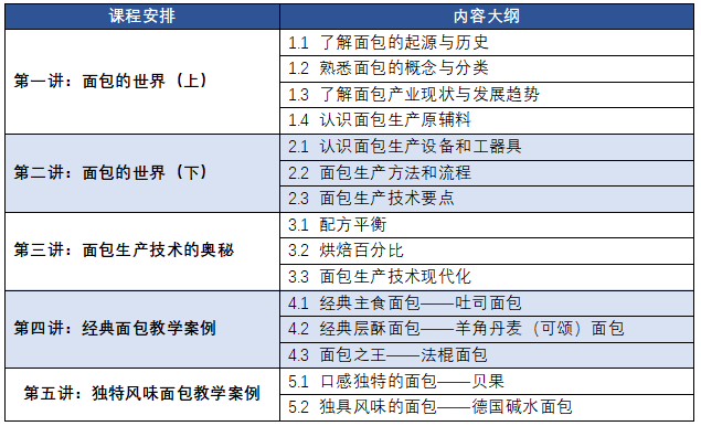《面包的世界》为食品伙伴网烘焙食品联盟邀请漯河职业技术学院贾娟副教授和江苏食品药品职业技术学院李红涛副教授联合推出的烘焙系列线上培训课程;区别于大多的线上培训课程,本次《面包的世界》从面包的起源、发展到原理理论、生产加工技术,通过理论+视频案例教学的模式,系统的进行面包的制作教学,让你对面包有更加深入的了解。