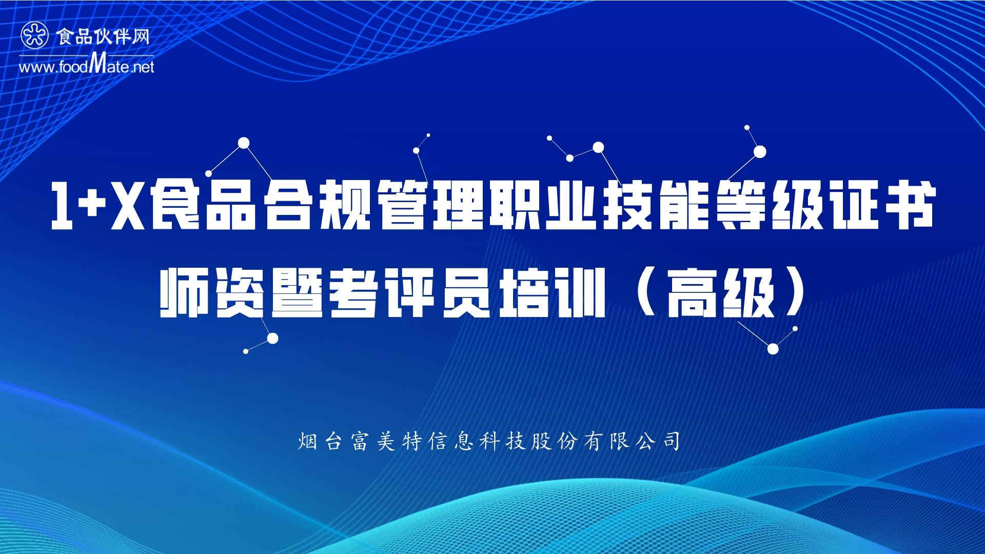 为贯彻落实《国家职业教育改革实施方案》和《教育部等四部门关于在院校开展“学历证书+若干职业技能等级证书”制度试点方案》,高效有序推进食品合规管理职业技能等级证书实施工作,助力院校专业师资团队建设,保障证书考核评价工作的规范性,烟台富美特信息科技股份有限公司(食品伙伴网)将于2022年7月9-13日举办1+X食品合规管理职业技能等级证书2022年第二期师资暨考评员培训班(高级)。