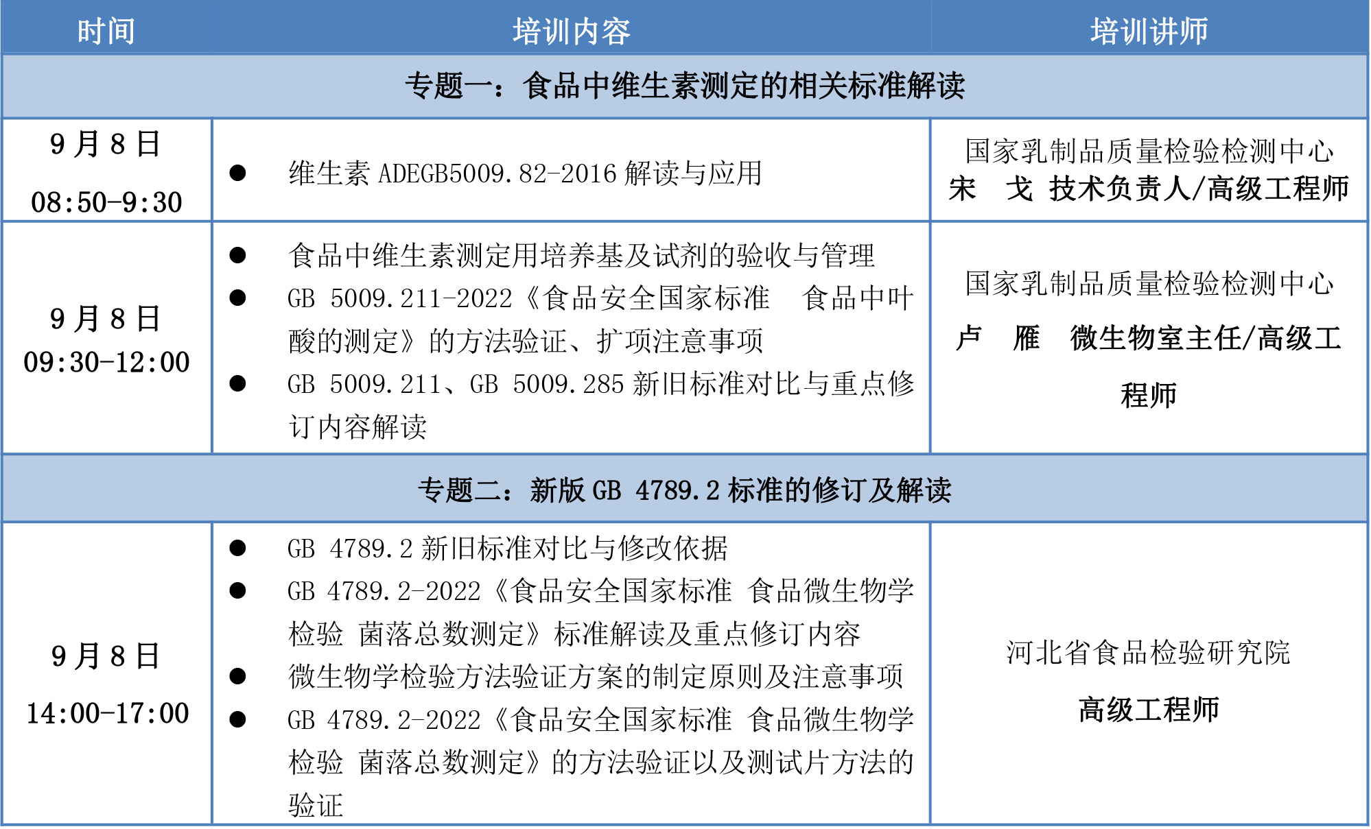 课程主题:新版GB 4789.2及食品中维生素的测定相关标准解析专项培训班专题二