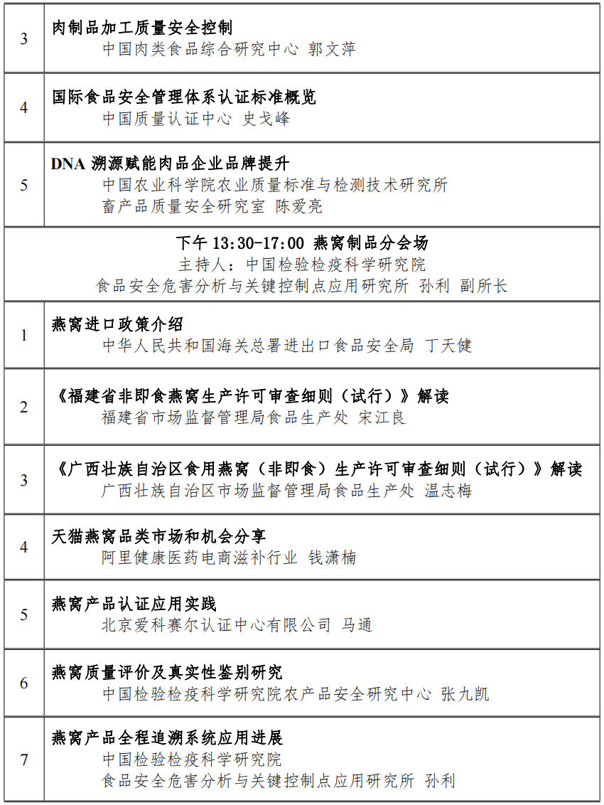 本届 HACCP 研讨会主要由开幕式、主题报告、专题报告(3 个专题)组成。拟邀请相关政府监管部门、知名专家学者做精彩演讲,组织市场监管人员、HACCP 认证机构审核员、评定人员、食品生产企业从业人员、有关科研单位和院校研究人员等共同参会研讨。