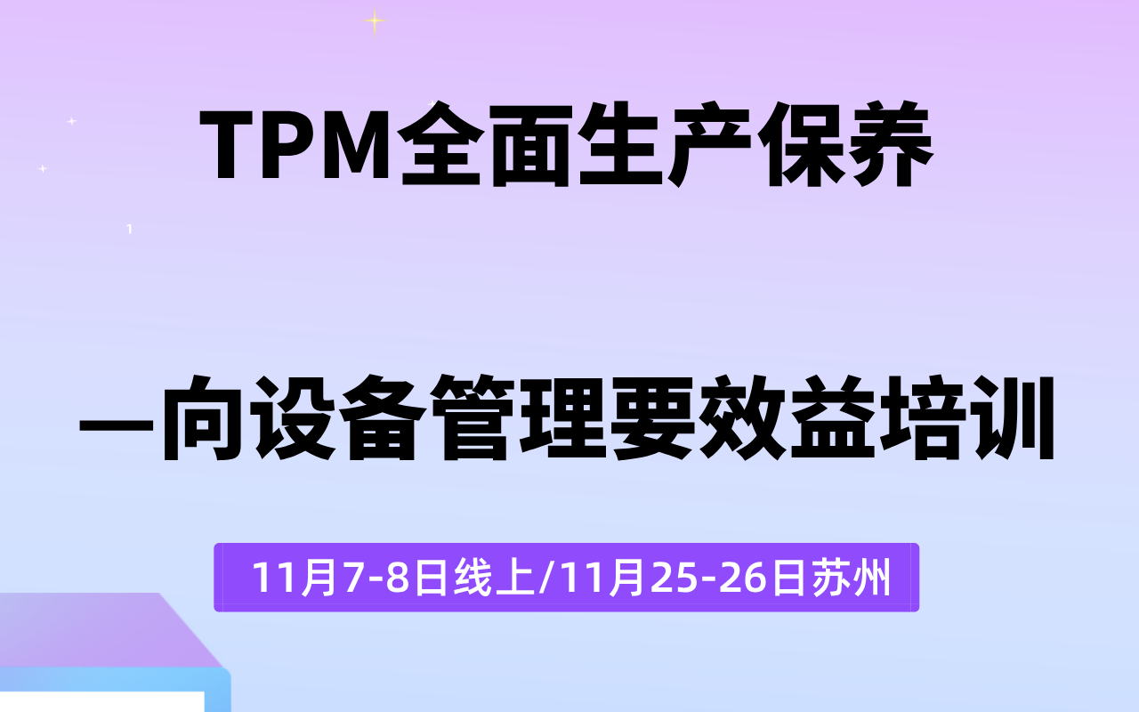 TPM全面生产保养—向设备管理要效益培训课程(线上网络培训/苏州)