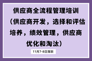 供应商全流程管理培训(供应商开发,选择和评估,培养,绩效管理,供应商优化和淘汰)--深圳/广州/上海/苏州