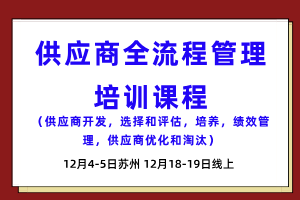 供应商全流程管理培训(供应商开发,选择和评估,培养,绩效管理,供应商优化和淘汰)--苏州/线上网络培训