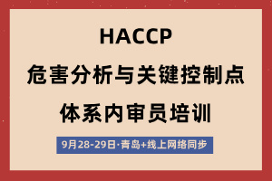 HACCP危害分析与关键控制点体系内审员培训(青岛+线上网络同步)