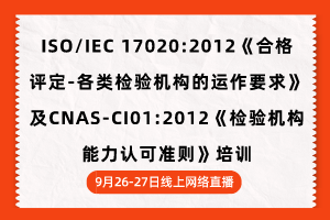 ISO/IEC 17020:2012《合格评定-各类检验机构的运作要求》及CNAS-CI01:2012《检验机构能力认可准则》培训(线上网络直播)