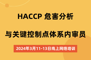 【3月】HACCP 危害分析与关键控制点体系内审员(线上网络培训)