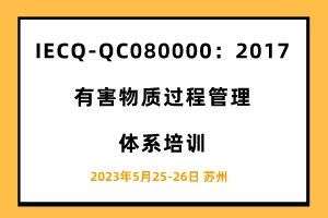 【5月】IECQ-QC080000:2017有害物质过程管理体系培训(苏州)