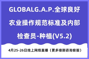 GLOBALG.A.P.全球良好农业操作规范标准及内部检查员-种植(V5.2)--线上网络直播