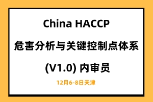China HACCP危害分析与关键控制点体系 (V1.0) 内审员(天津/沈阳/大连/苏州/线上网络直播)