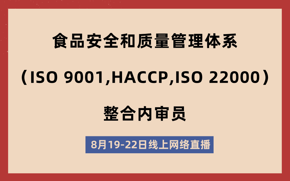 食品安全和质量管理体系(ISO 9001,HACCP,ISO 22000)整合内审员(线上网络直播)