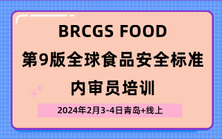 【2024年1月】BRCGS FOOD第9版全球食品安全标准内审员培训课程(青岛+线上网络同步)