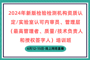 【6月】2024年新版检验检测机构资质认定/实验室认可内审员、管理层(最高管理者、质量/技术负责人和授权签字人)培训班(线上网络直播)