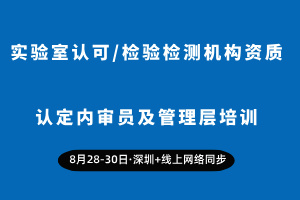 实验室认可/检验检测机构资质认定内审员及管理层培训班(深圳+线上网络同步)