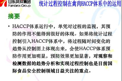 演讲稿:统计过程控制在禽肉生产企业HACCP体系中的运用 张凡军