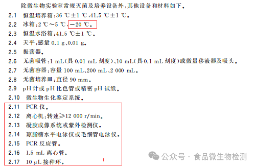 3.增加PCR检测方法的所用到的PCR仪、离心机、电泳仪、反应管、离心管、接种环等设备和材料。
