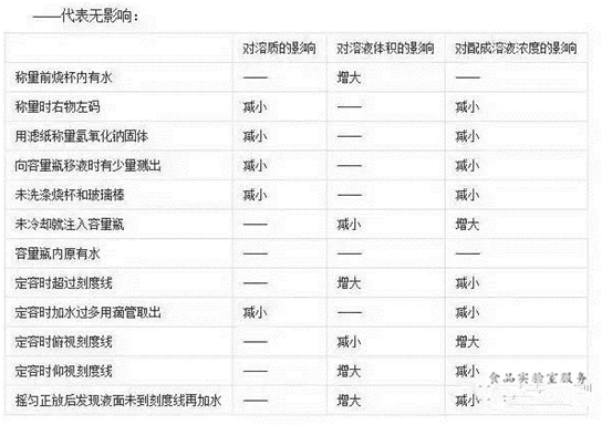 溶液的配制影响因素见下表:
