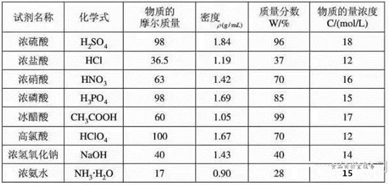 常用酸、碱试剂的密度和浓度表