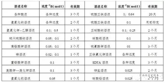 2、溶液的储存要求:在常温(15℃-250C)保存时间不得超过2个月。浓度等于或低于0.02mol/l的标准溶液应于临用前将浓度高的标准溶液用煮沸并冷却的水稀释制成,必要时重新标定浓度。