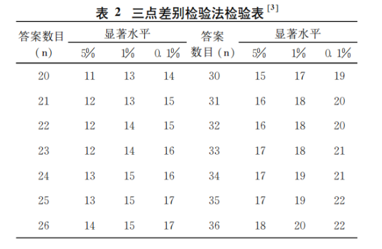 05三点差别检验法检验表三点差别检验法检验表,见表 2。